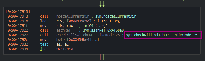 function. We can see that a function named checkKillSwtichURL
