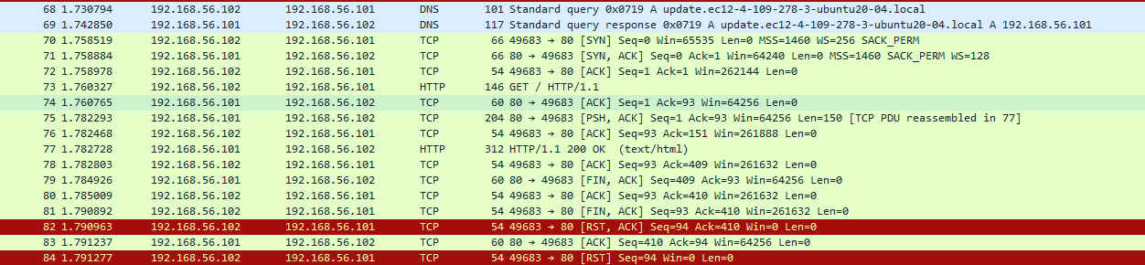 We can see the full exchange, starting from DNS to TCP into HTTP. The program performs a HTTP GET on /