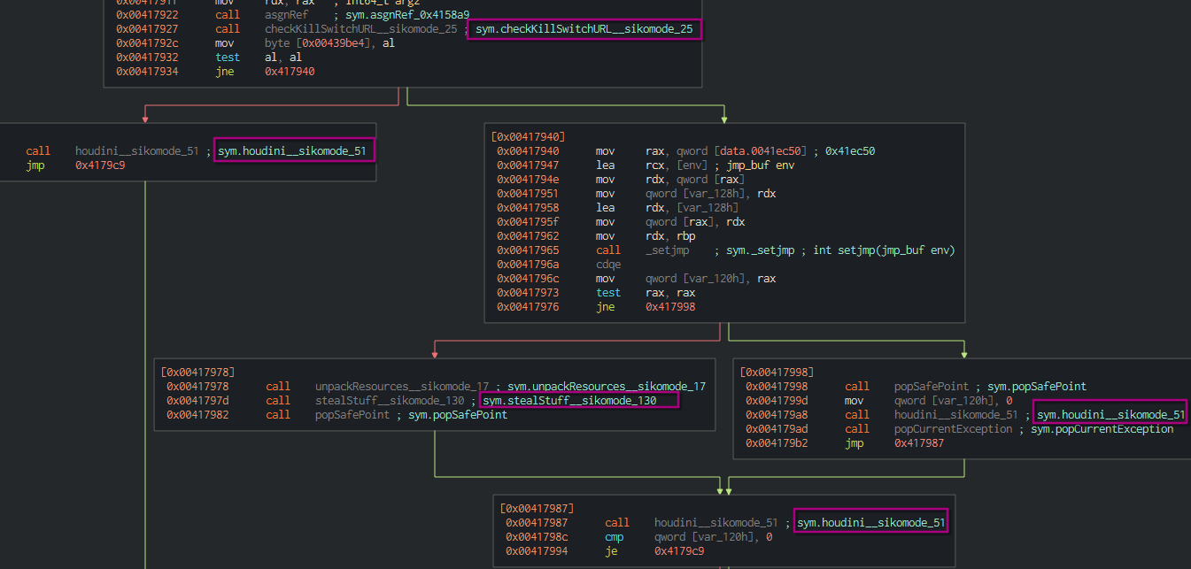 function. We can see that a function named checkKillSwtichURL