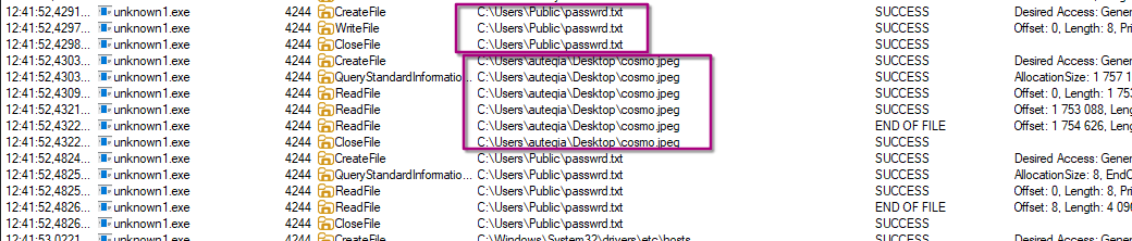 As we have already seen, the malicious program read the content of cosmo.jpeg