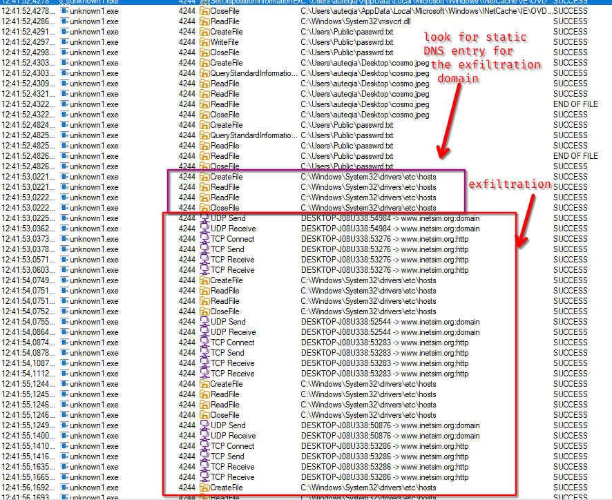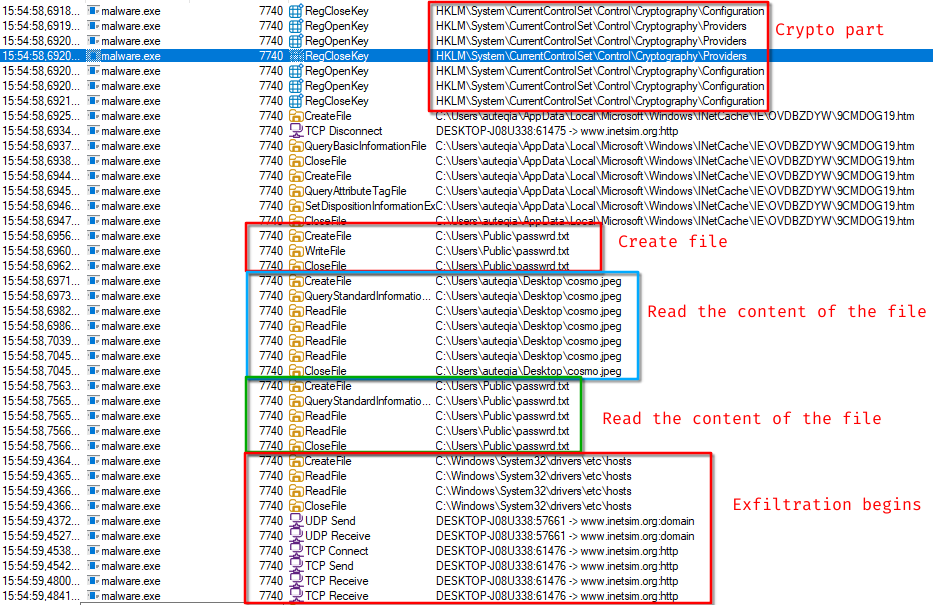 - If inetsim is stopped during the execution