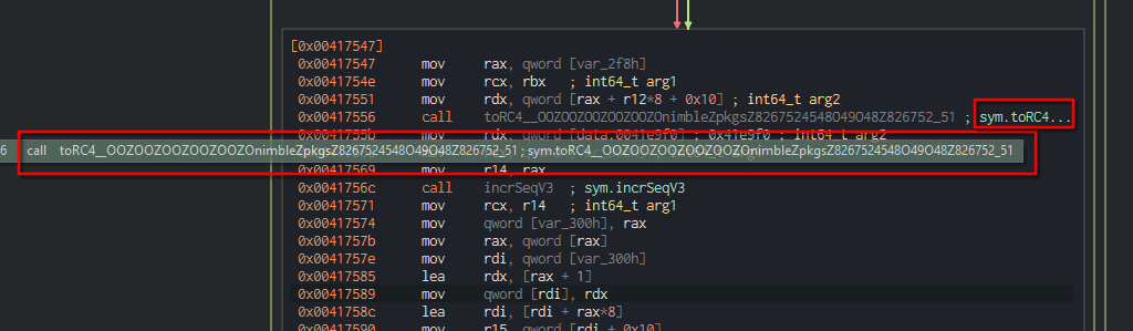 After displaying the graph view on Cutter, we can seek for sym.NimMainModule