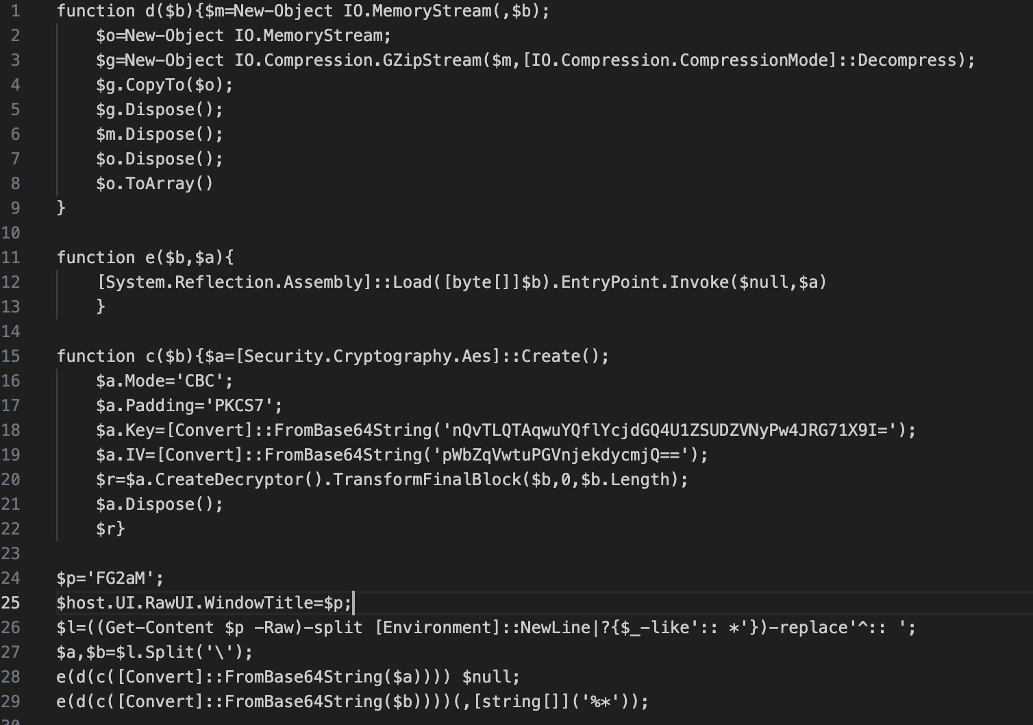 - The first line is an obfuscated payload that is used to disable the AMSI:
