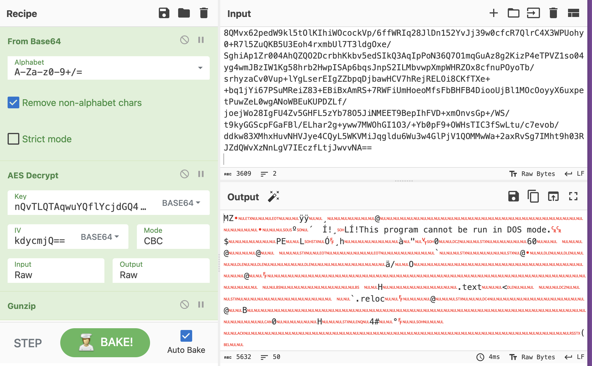 We can now hit the road to CyberChef and decrypt the resource and pull out the final stage: