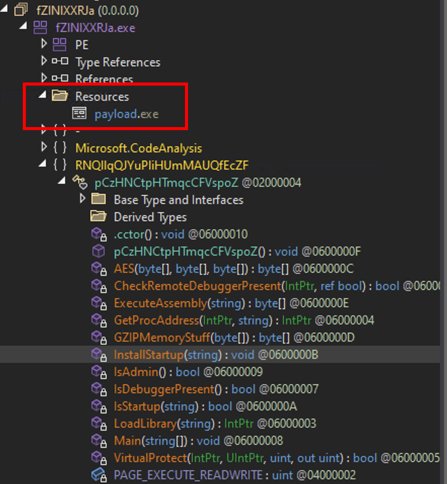 And finally, we can see that there’s a payload.exe that lies silently inside the Resources: