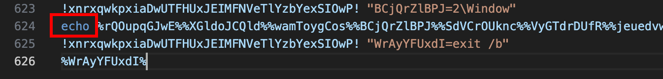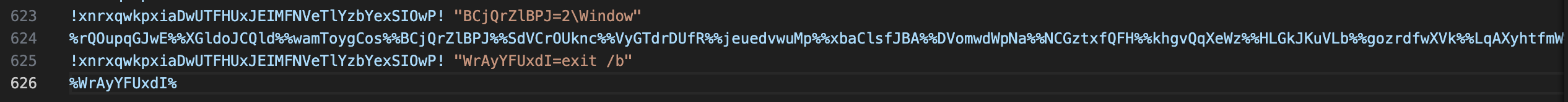 Inside the .bat file, at the line 148, lies a sleeping payload that is commented.