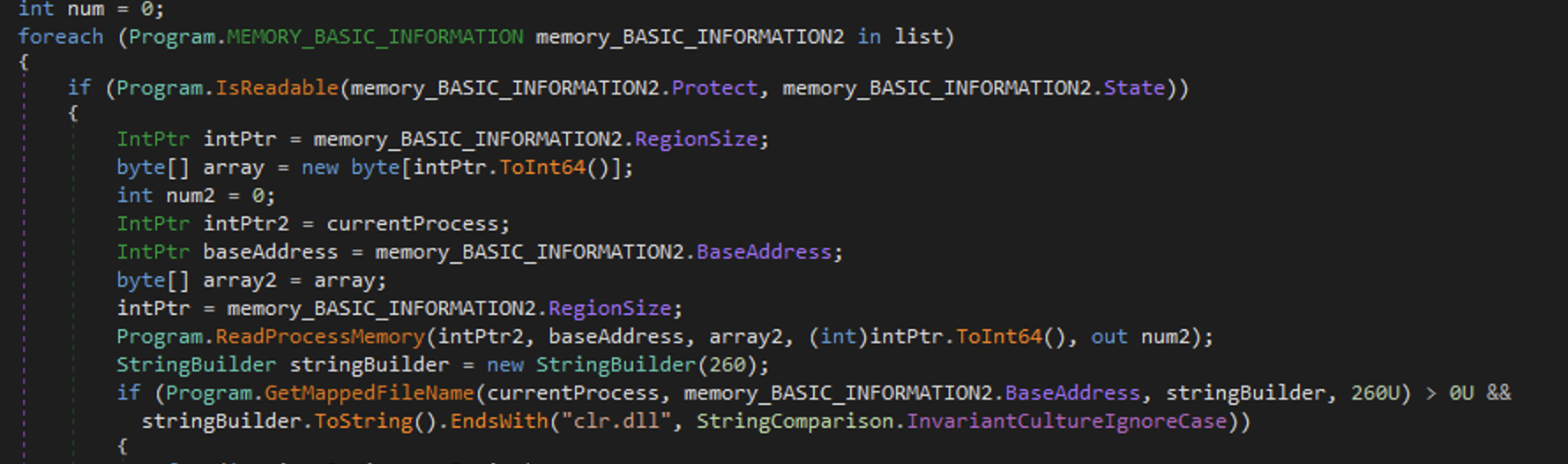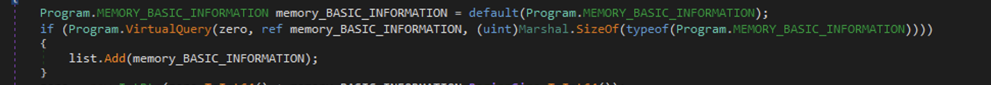 Then it reads all bytes from that memory region using ReadProcessMemory.