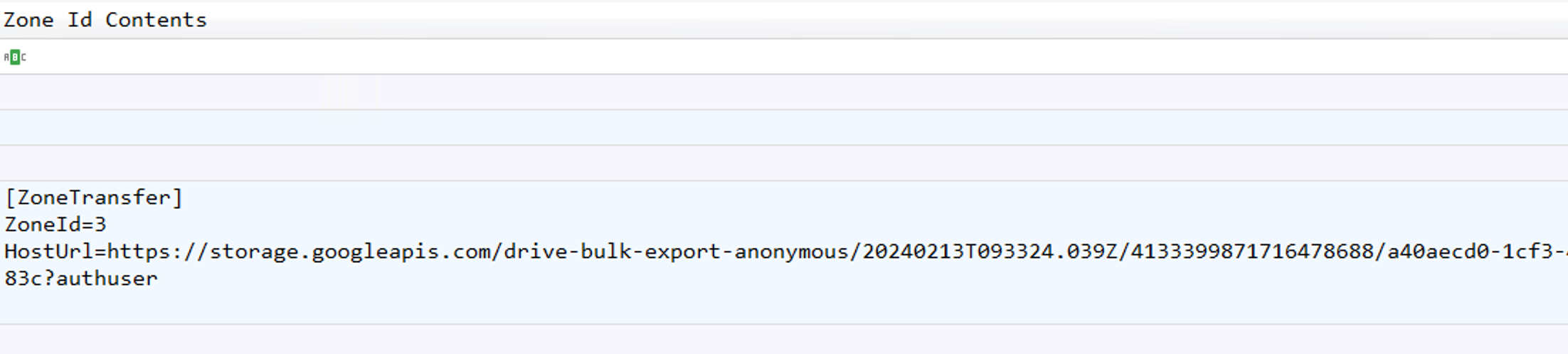 On the same line as the previous question, there is a field called Zone Id Contents
