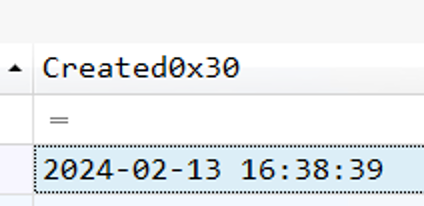 4. Analyze the $Created0x30 timestamp for the previously identified file. When was this file created on disk?
