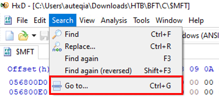 file in a hex editor. For me it will be HxD. Open the file and hit the Go to...